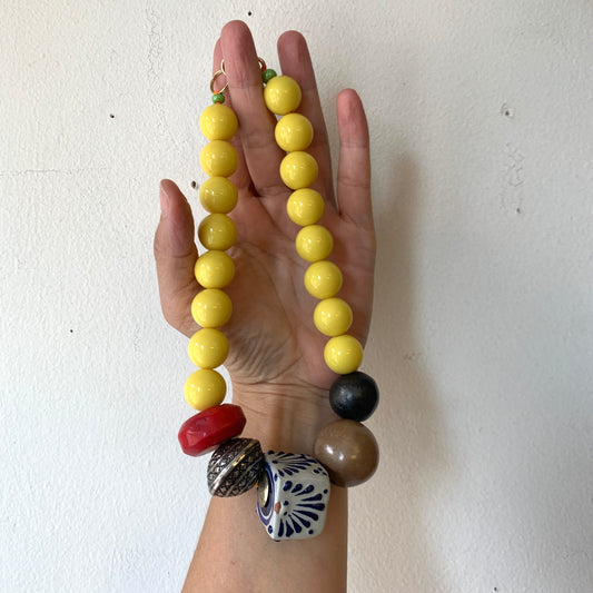 Asymmetrical Bead Necklace- Yellow